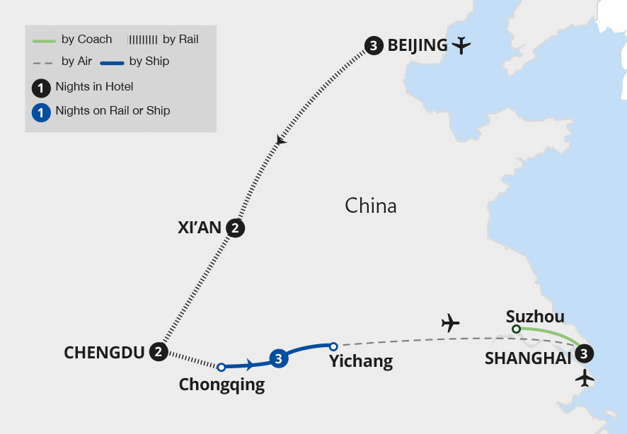 Uncover an incredible blend of breathtaking modernism and beautiful imperial history on a tour of China's ancient and modern wonders. Step into history during visits to the iconic Forbidden City, Temple of Heaven and the Great Wall of China while in Beijing. Travelling by high-speed rail, explore ancient Xi'an and its astonishing Terracotta Army...