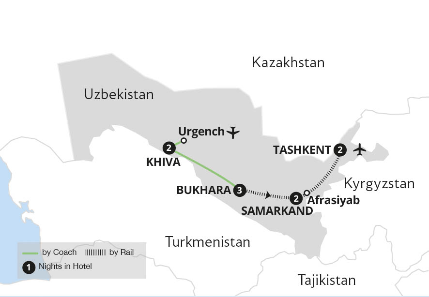 Step back in time on an exploration of Uzbekistan, uncovering the central Asian country's blend of bewitching stories and intriguing landscapes. Explore ancient fortresses hidden in sandy deserts on a fascinating journey, conjuring up enduring images of traders on the golden road to Samarkand and its iconic Registan. Stroll among astonishing...