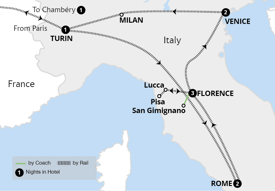 Join us on a tour of six of Italy's great historic cities, encountering a wealth of artistic and cultural treasures including World Heritage sites, with guided tours of ancient Rome and the world's Renaissance capital, Florence. With day trips to the walled Tuscan city of Lucca, Pisa's iconic tower and its gleaming white Duomo, we take a day trip...