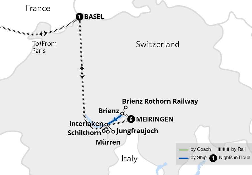 A holiday which combines an iconic rail trip to the 'Top of Europe' and a stay in beautiful Interlaken with the stunning landscapes of a luxurious Rhine Cruise. Starting from our base in Interlaken, nestled between two serene alpine lakes, enjoy the breathtaking views of the Bernese Oberland as we take a scenic journey on the Jungfrau...