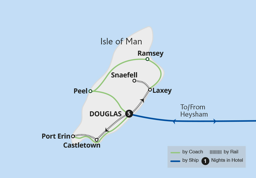 The Isle of Man is a unique blend of unspoiled coastal landscapes, sandy beaches and stunning scenery. The rich Celtic heritage is evident all over the island, and we experience it by riding vintage railways and exploring historic towns. Each day is an adventure of picturesque landscapes and captivating history as we journey down Douglas...
