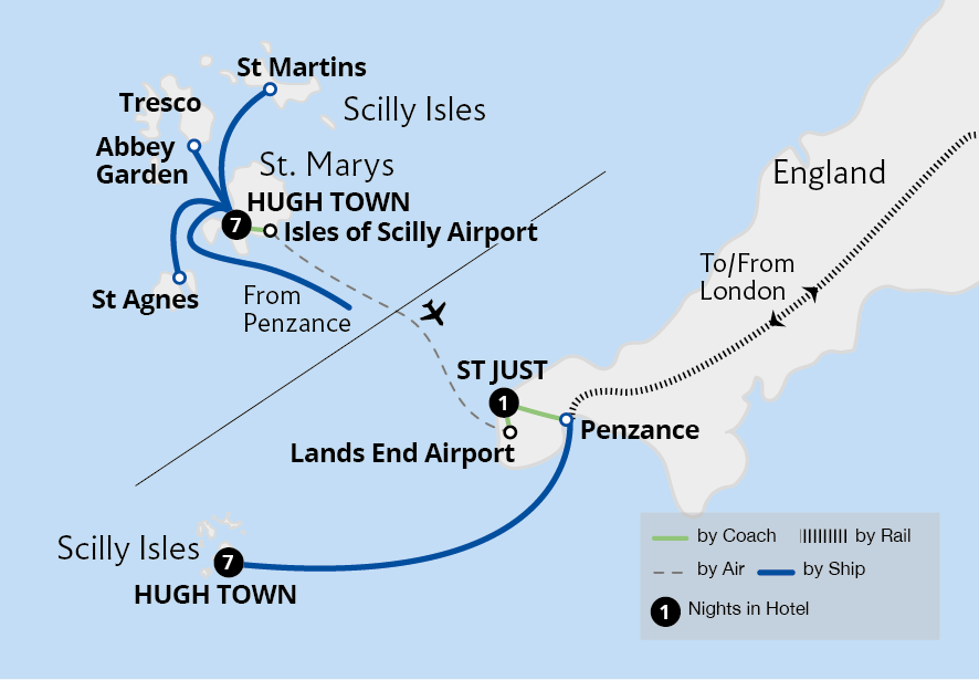 Escape to the picturesque Isles of Scilly and enter an unspoilt world with a gentle climate, heavenly beaches and a relaxed pace of life. Based on the main island of St Mary's, spend your days uncovering local treasures, admiring Tresco Abbey's sub-tropical gardens, and visiting the beautiful islands of St Agnes and St Martin's. While...