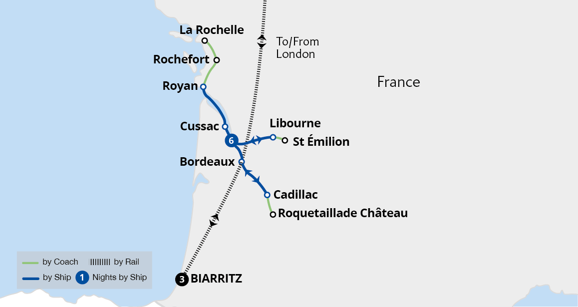 Experience the Basque coast of France and a river cruise into the wine region of Bordeaux. Starting in the Belle Époque city of Biarritz, we enjoy a trip on La Rhune Mountain Railway in the western Pyrenees. Next, we sail through the scenic Garonne and Dordogne aboard the MS Cyrano de Bergerac, into one of Europe's most renowned wine regions.