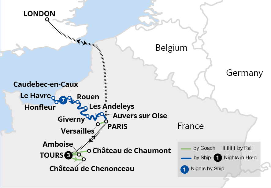 Explore some of the best-loved châteaux of the Loire Valley, then cruise the Seine, discovering the gems of Paris, Rouen and Honfleur. Explore the iconic Château de Chenonceau, Leonardo da Vinci's Clos Lucé, and Château de Chaumont, before boarding the MS Amadeus Diamond for a leisurely cruise down the Seine. From the charm of Auvers sur Oise to...