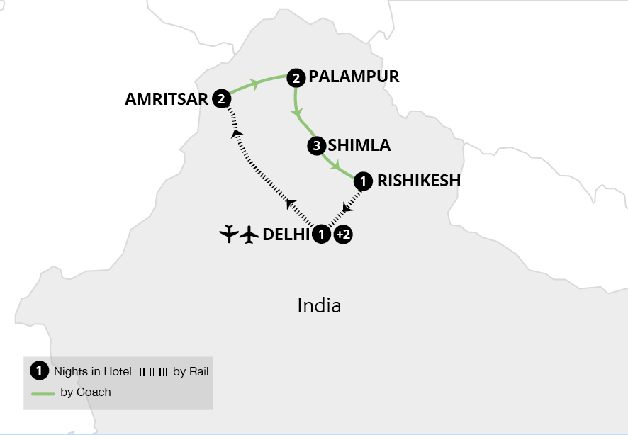 From Punjab to the banks of the Ganges, embark on an unforgettable journey through spiritual locations in northern India. Experience the cultural hearts of Sikhism and Buddhism by witnessing the enchanting Palki ceremony at the Golden Temple in Amritsar and visiting Dharamshala. Tour a vast tea estate in the foothills of the Himalayas and...