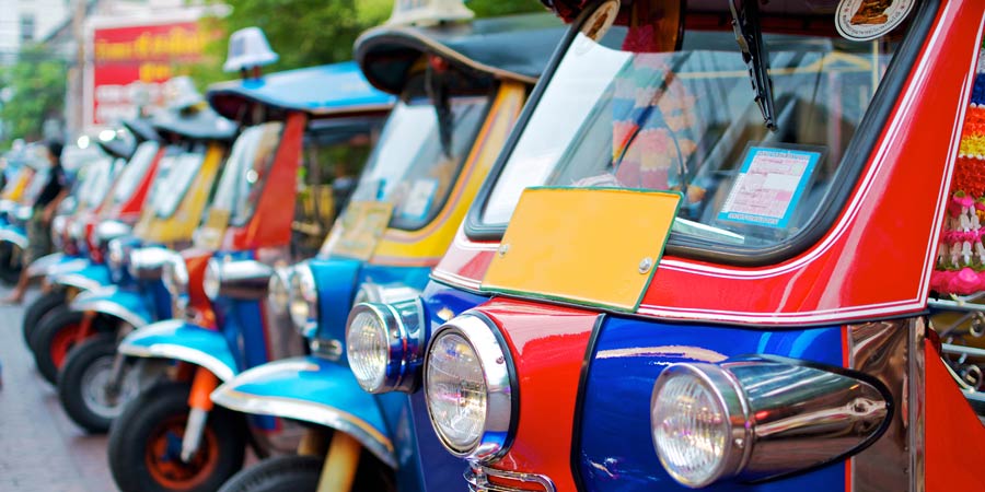 The two then continue, via tuk tuk of course, to the grounds of another temple for a visit to the national school of Thai massage. Here he sits down, or rather, lies down to a particularly indulgent Thai massage, which Tony tells us is more like yoga. The art is three thousand years old, according to the masseuse, invented as it was, by a Thai doctor. Feeling relaxed, they head through the sparkling lights of the Bangkok so Tony can catch his next train. He bids goodbye to faithful King Kong at the station.