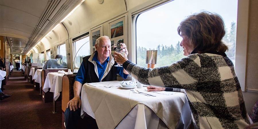 Park and the Rocky Mountains. The train travels along the Fraser