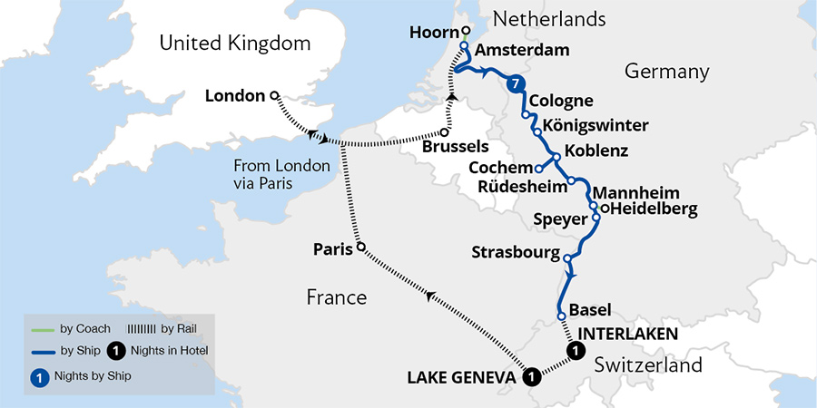 Experience a holiday of a lifetime with an enchanting Rhine river cruise followed by a rail adventure on the cutting-edge GoldenPass Express. From the streets of Amsterdam, where historic landmarks meet modern charm, to the picturesque Moselle Valley and the legendary Rhine Gorge, every moment is a cultural experience. Step aboard the Amadeus...